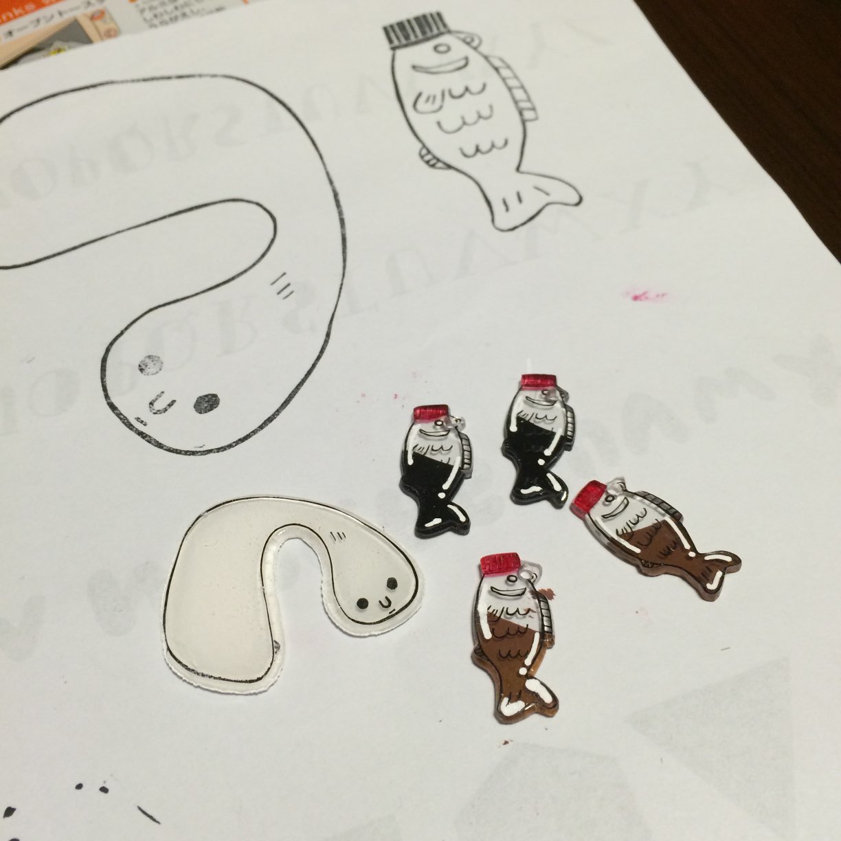 それをプラバンに捺して色をつけて焼いてみた。