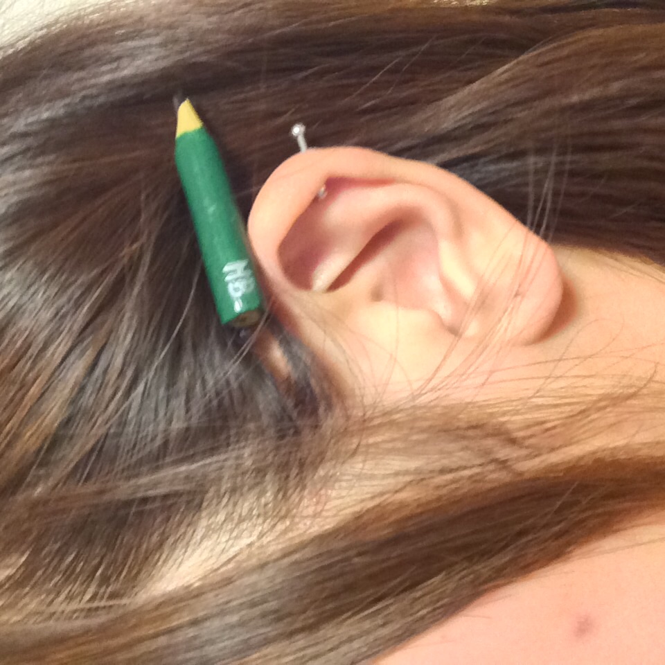 粘土で作ったえんぴつで「誰でも大工さんヘアピン」