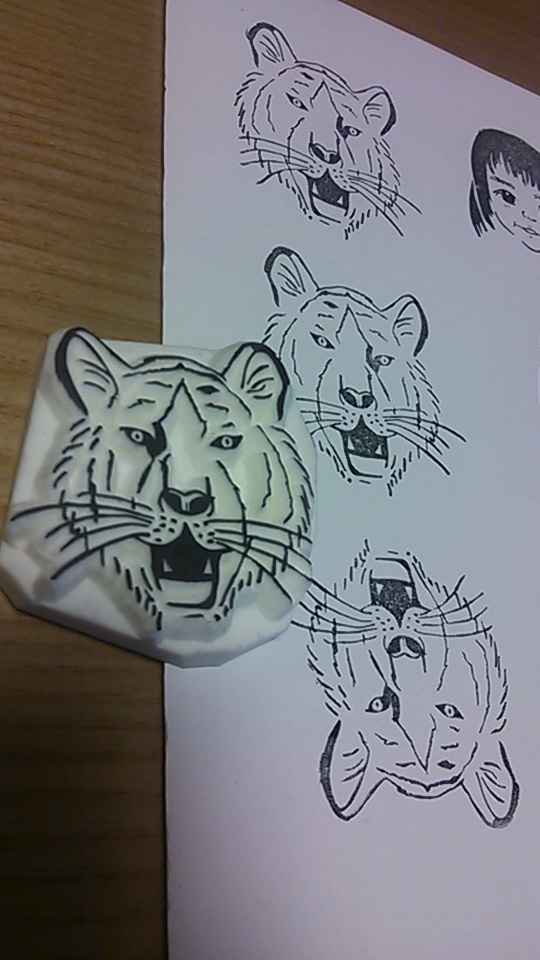 彫り終わったあとの試し捺し。