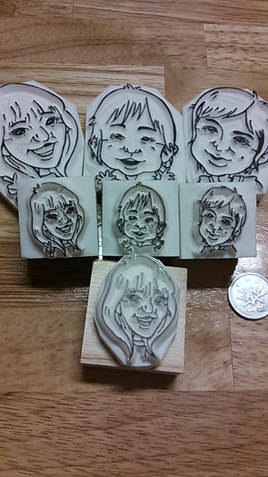 一番大きいのが昨日彫ったもので、小さいのはみーもんが名刺に使いたいとのことで、ついでにはんさんと私のも♪
